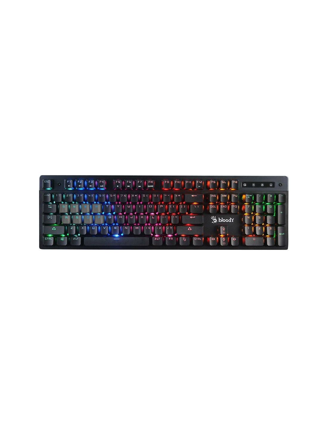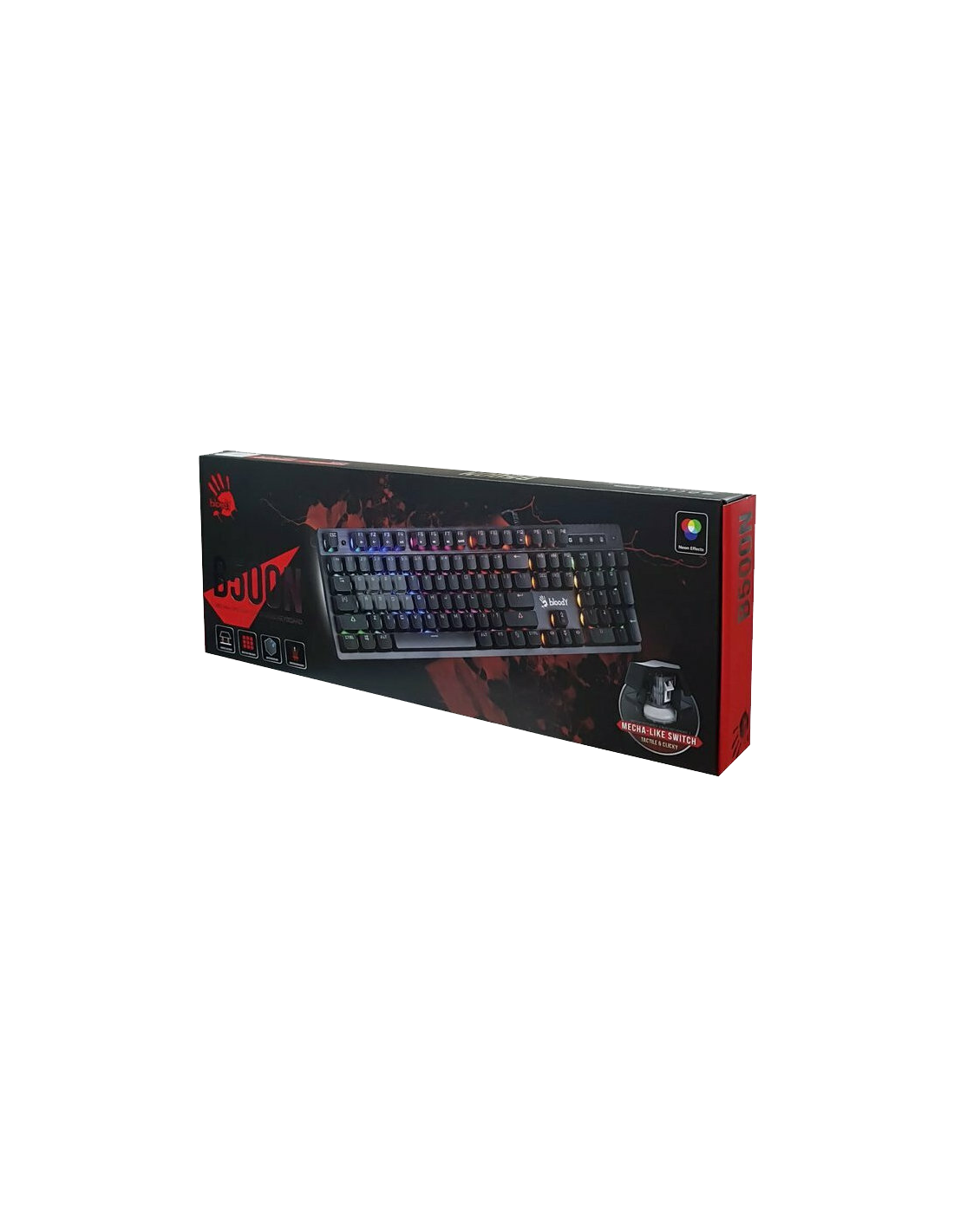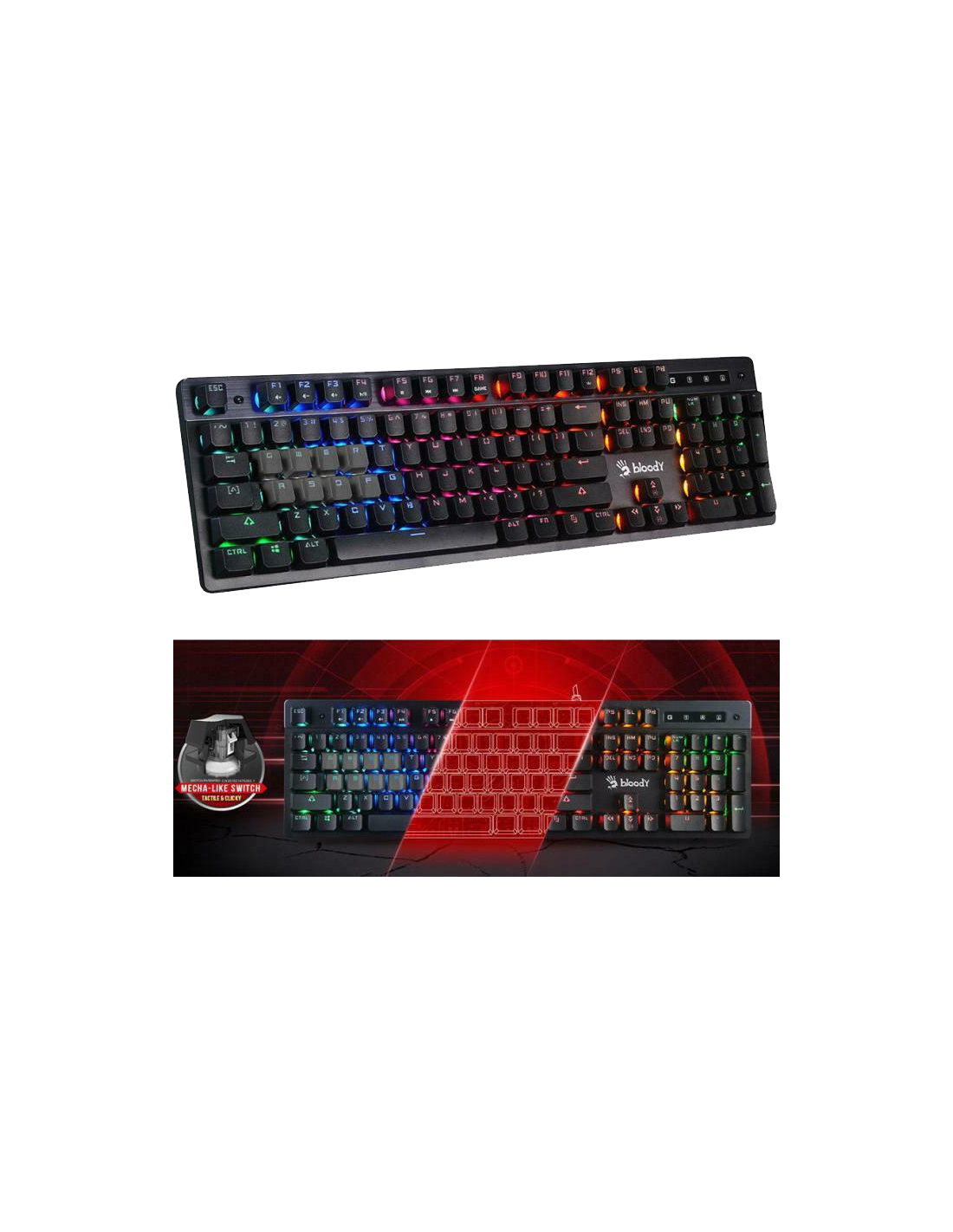 Gaming keyboard by Bloody, equipped with the innovative and patented Mecha-Like switches (Tactile & Clicky), which simulate the operation of LK (Light Strike) mechanical switches, offering an experience that reaches up to 95% of mechanical switches.